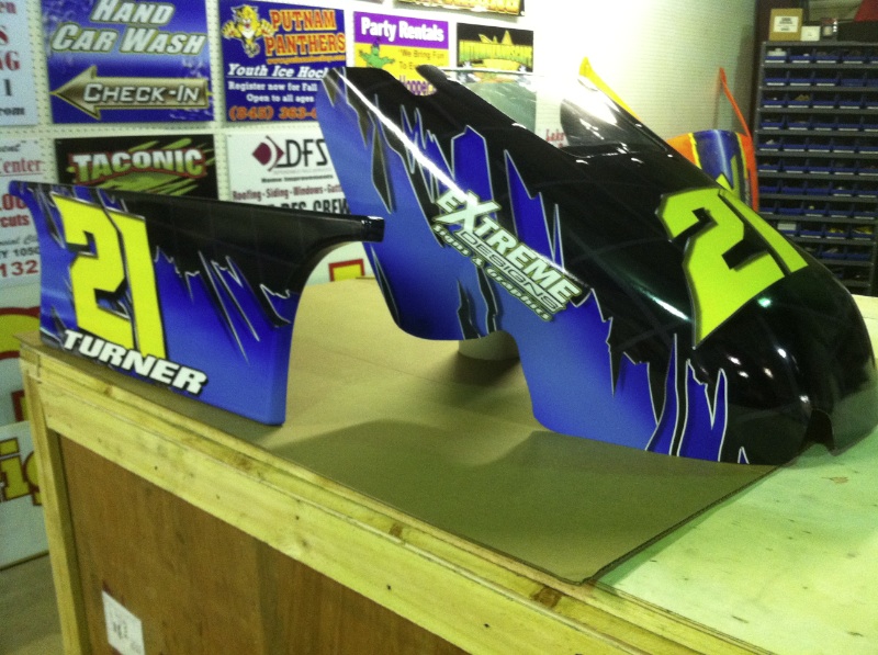 | With unlimited design and color options, our partial or full wraps give you a photo quality, single layer print. All of our race car wraps come with a high quality gloss laminate applied to the top of the print that makes them very durable. This also protects the print from grease, dirt and chemicals. The material we use allows air to escape reducing air bubbles through an air release system resulting in quicker, easier installations. All designs are kept on file so wrap repair is made easy with reprintable sections for any part of your race car. Wraps can also be used on pit equipment and trailers to give your team that professional image. Whether you're looking for traditional vinyl or a full wrap, EXTREME DESIGNS can take your ideas and turn them into a design that fits your budget! |